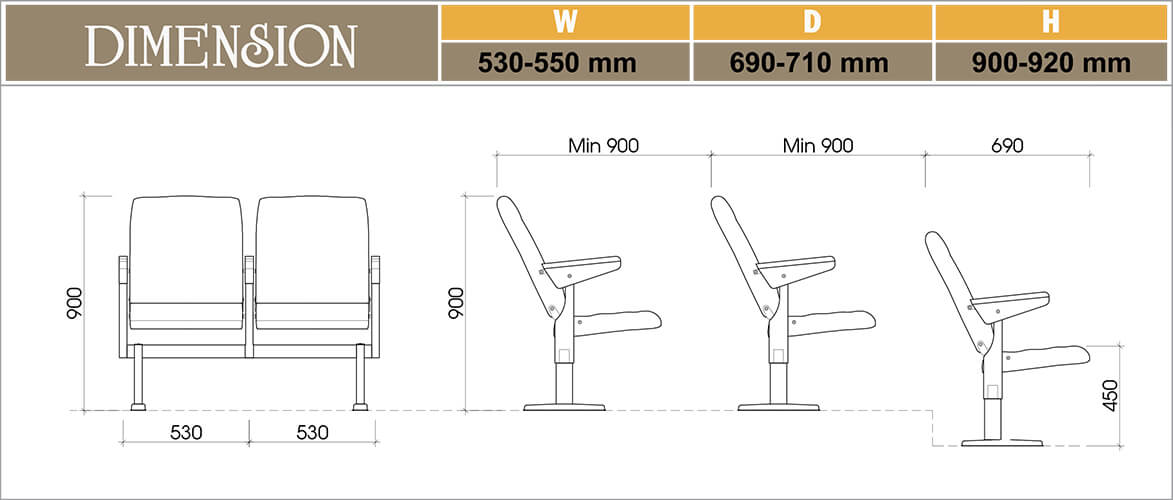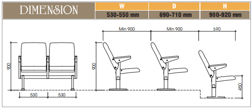 - Ghế được thiết kế gọn gàng, thích hợp dùng cho hội trường có diện tích nhỏ và vừa