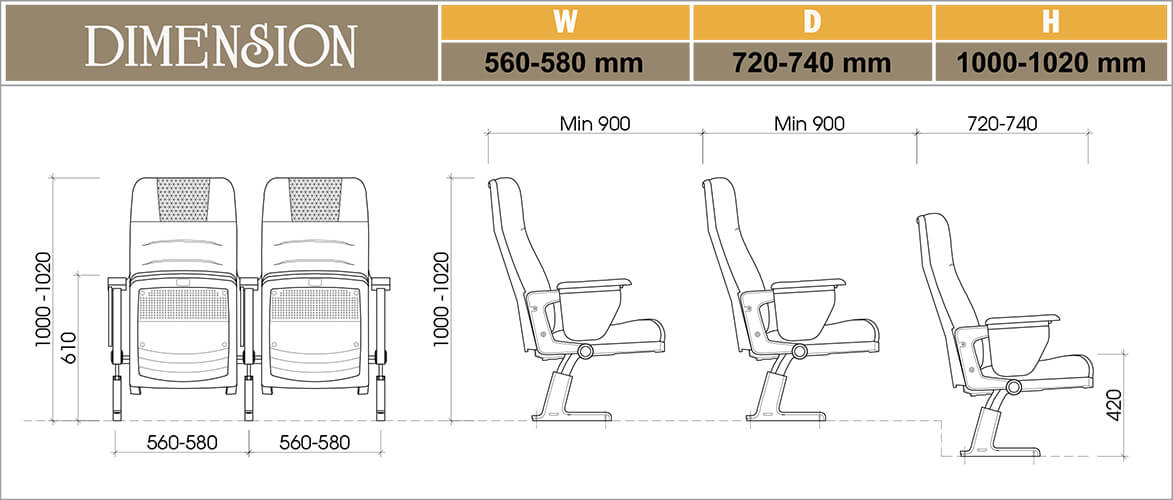 | Kích thước | W(560-580) x D(720-740) x H(1000-1020) mm | |