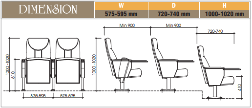 • Kích thước: W(575-595) x D(720-740) x H(1000-1020) mm.
