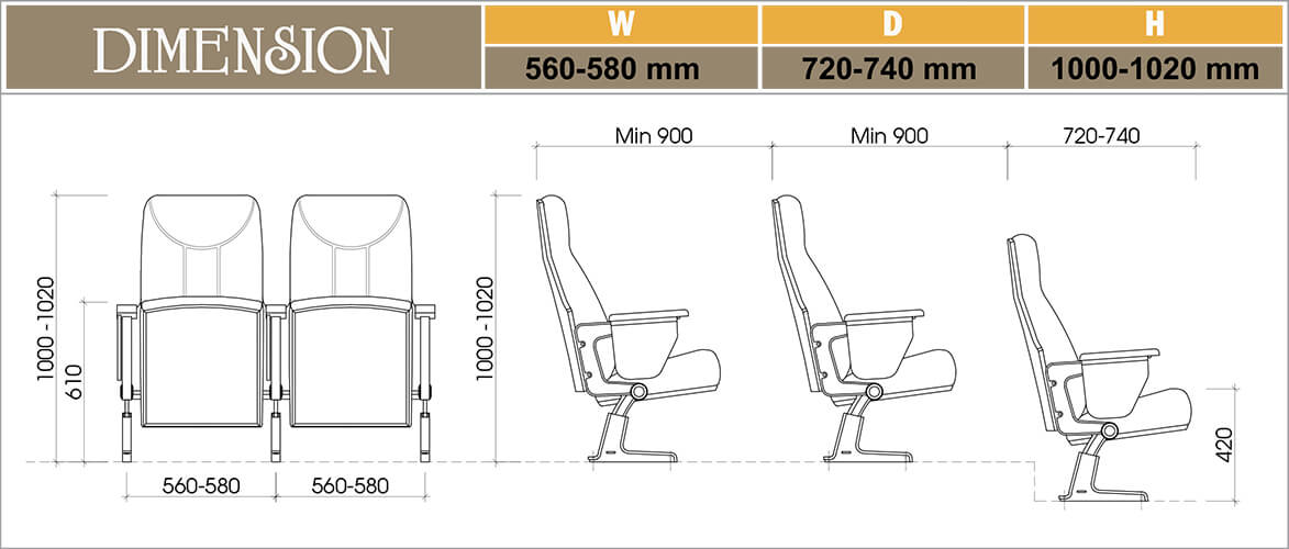 • Kích thước: W(560-580) x D(720-740) x H(1000-1020) mm.